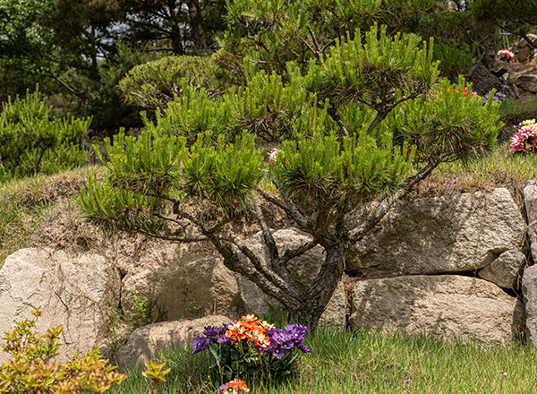 나무와 함께하는 영면: 지정된 추모목에 작은 비석으로 전통의 가치를 잇습니다.